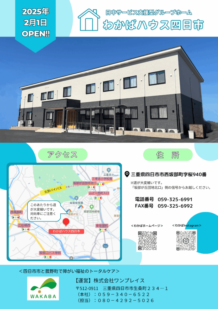 2025年2月OPEN‼ 日中サービス支援型グループホーム『わかばハウス四日市』